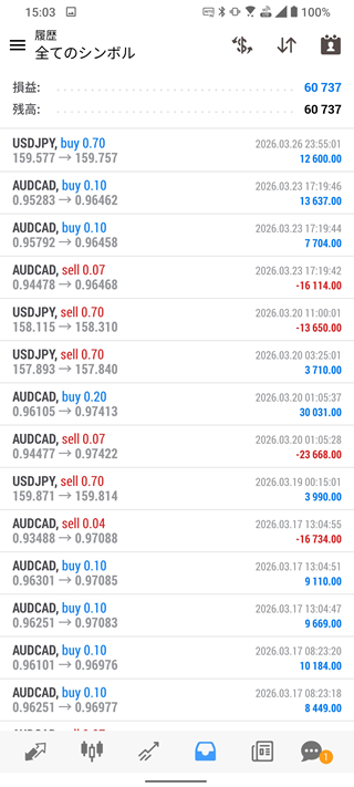 3号機(MT4+EA自動売買)は+60,737円