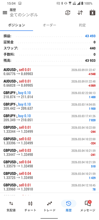4号機(MT5+無料EA自動売買)は+43,933円