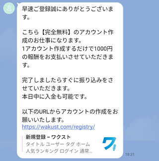 LINEに登録すると「仕事」の内容が判明