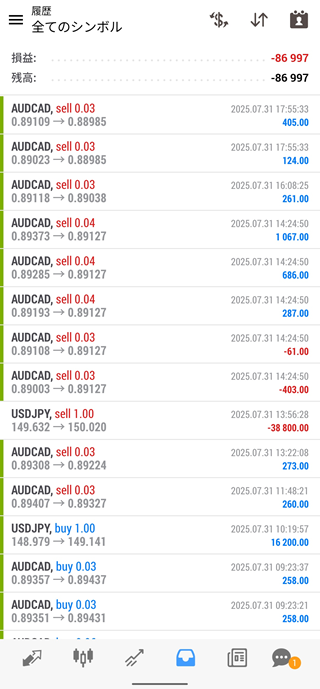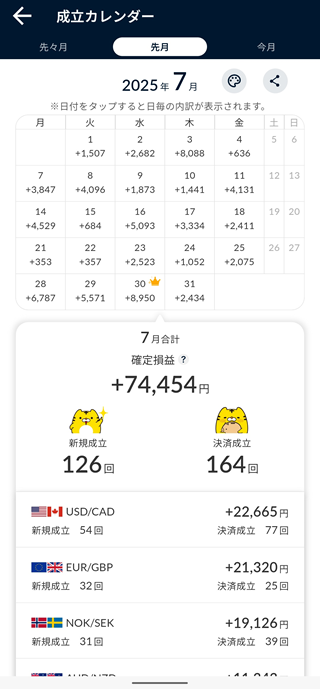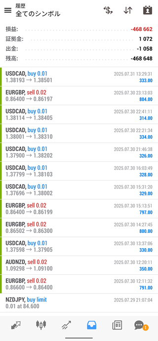 2025年7月のFX自動売買運用成績は、-464,604円でした