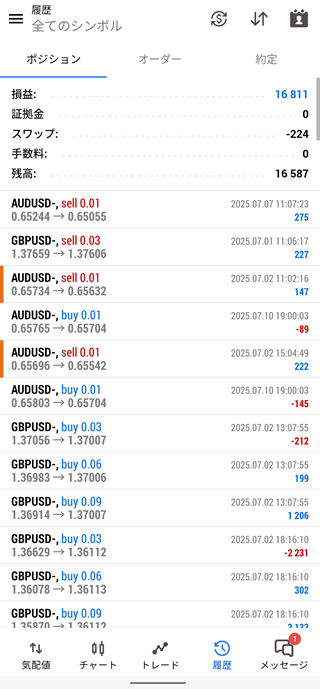 4号機(MT5+無料EA自動売買)は+16,587円