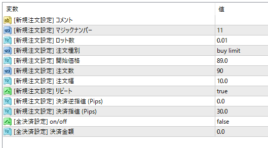 2号機ではMT4を使ってリピート自動売買のEAを走らせています。こちらでもNZドル円の買いトレードをやってるんですが、レンジ幅は85円が上限でした。これも89円に拡大。