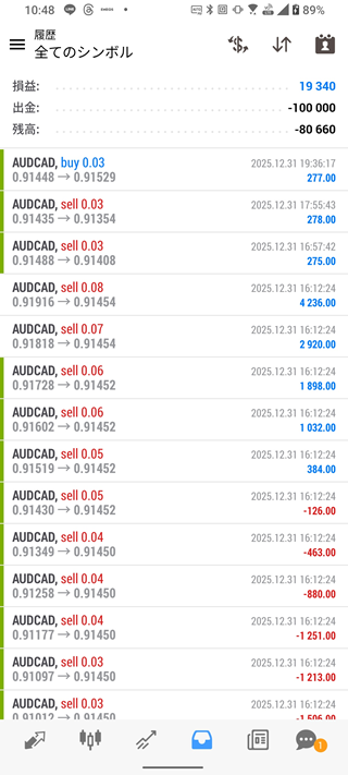3号機は、約2万円の利益。普段の成績と比べるとかなり少ないです。AUD/CADがあまり動かなかったことと含み損が大きくなる展開が続いていたこともあって、利確回数が少なかったことが響きました。