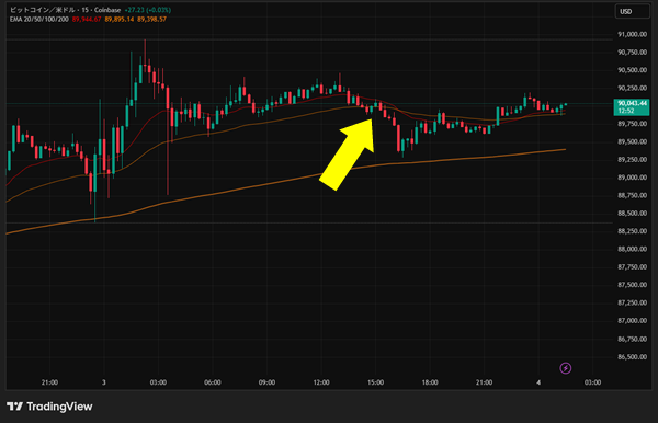 1月3日の夕方に急落したビットコインが4日は朝から上昇しているところを見ると、少なくとも暗号資産はリスクオン継続に見えます。